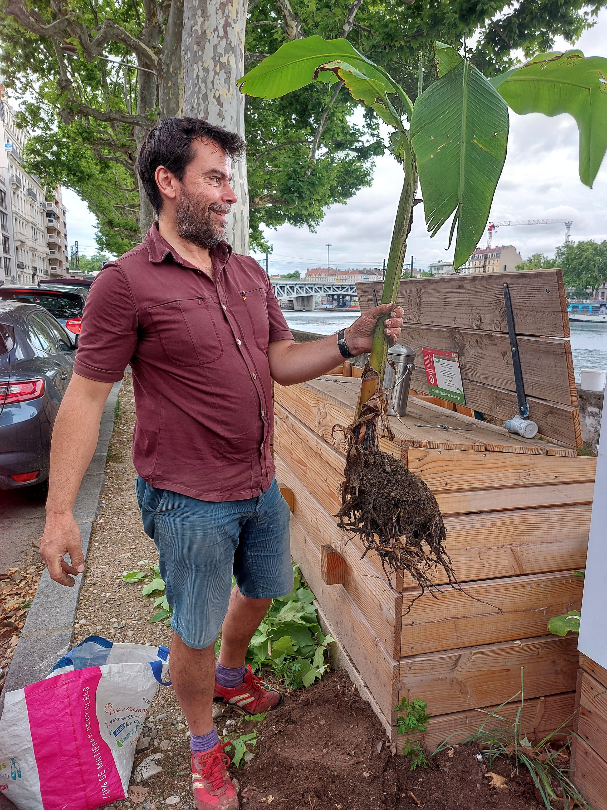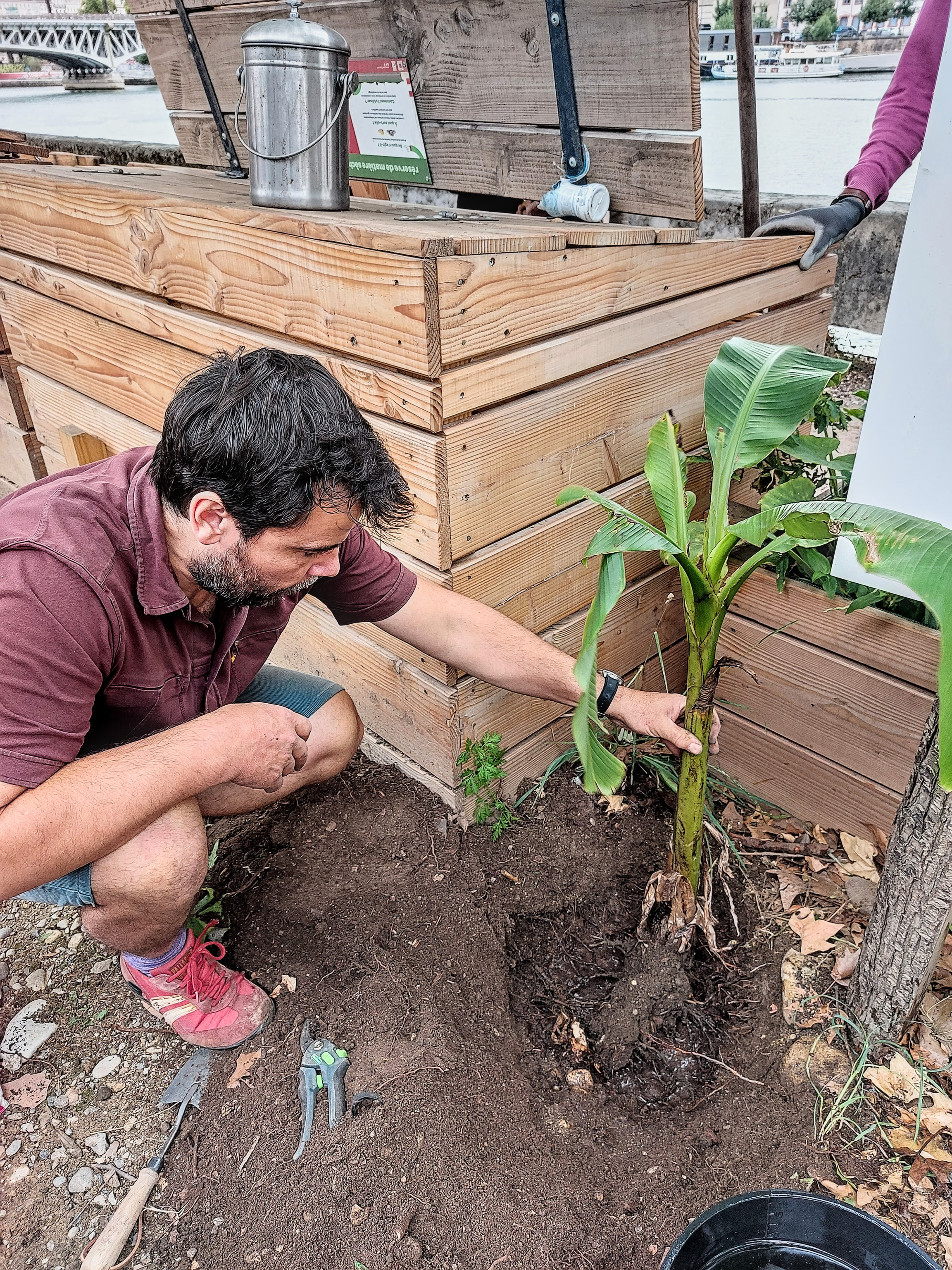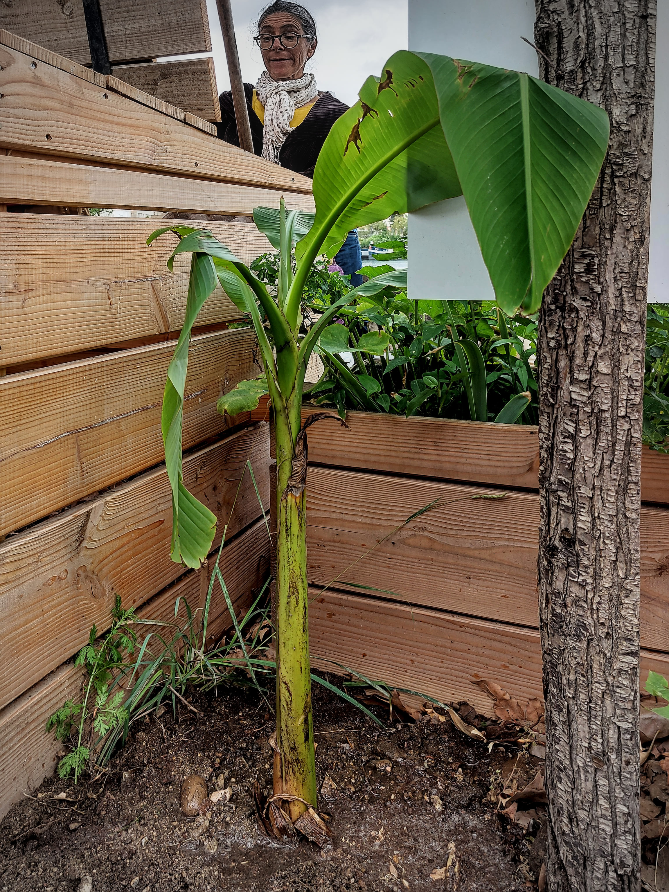 Dans le même temps, Olivier a apporté et planté un magnifique petit bananier qui, on l'espère, trouvera sa place au sein de notre carré vert !