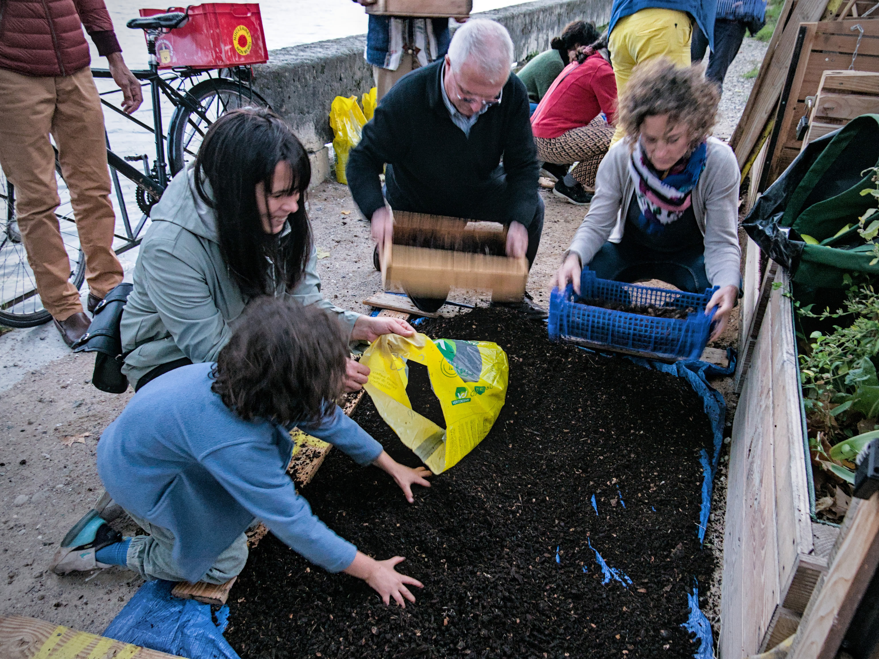 - Servir de monnaie d'échange avec Gaia, l'association gérant le jardin partagé au dessus de notre quai, qui nous a fourni des végétaux et un broyeur nous permettant de ré-alimenter notre bac de matière sèche qui était en panne (sèche également). Un grand merci à eux (et à Alex pour avoir initié cet échange).